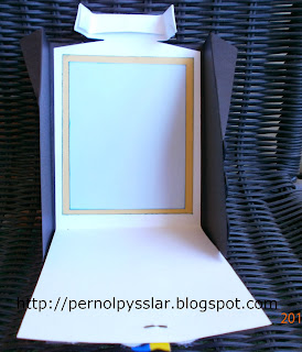 Jag gjorde en distressruta på detta kortet också. Men denna gång gick det i blått. Fjärilen stansade jag ut med en MS punch och textstämpeln kommer från Forma Hantverk.
