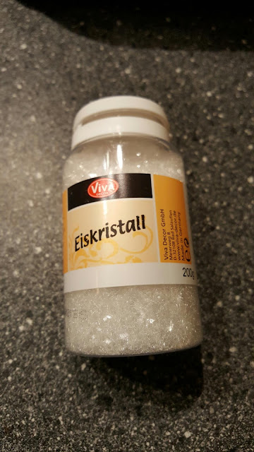 För ett tag sen gjorde jag detta kort nedan. Rektanglarna är en die. På det utstansade, diecuten, har jag hällt lim och sedan lagt på Eiskristallen. Kristallerna finns i en burk att köpa genom Scrap It Up. Det syns inte så bra på kortet hur det glänser om rektanglarna. Men det gör det.